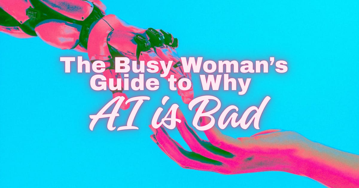 The Busy Woman’s Guide to Understanding Why AI is Bad. Are you overwhelmed (and frankly, scared) by all of the AI news, but at this point you’re so confused about what is going on, why we should care amidst everything going on, and why it’s bad? Then I have the series for you. Check out the first part of what is shaping up to be a many part series to help you understand what is AI, why it is bad, who is benefiting, and what we can do about it.